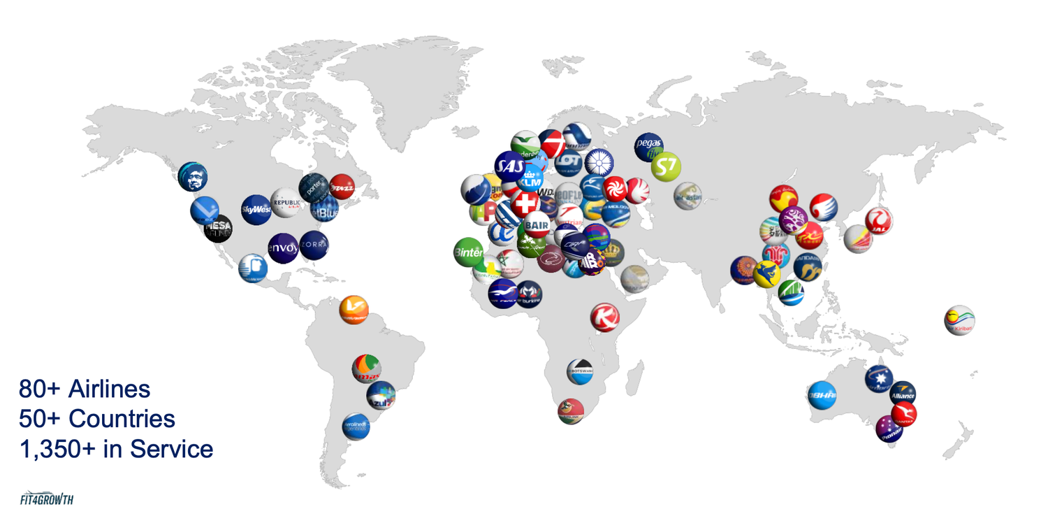 Independentemente do burburinho na Ásia-Pacífico, as oportunidades são mundiais. Não há uma região específica, seja África, Ásia ou Europa. No entanto, a empresa acredita que, com os movimentos que estão sendo feitos na Ásia, há mais tração nessa área, inclusive na China. A imagem abaixo enfatiza a presença expansiva da Embraer nos continentes.